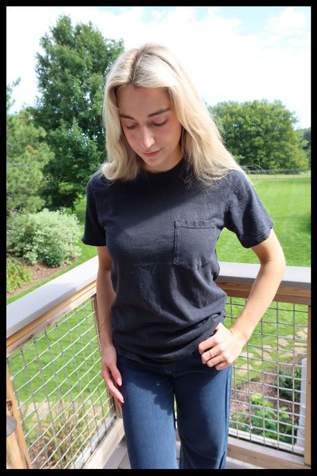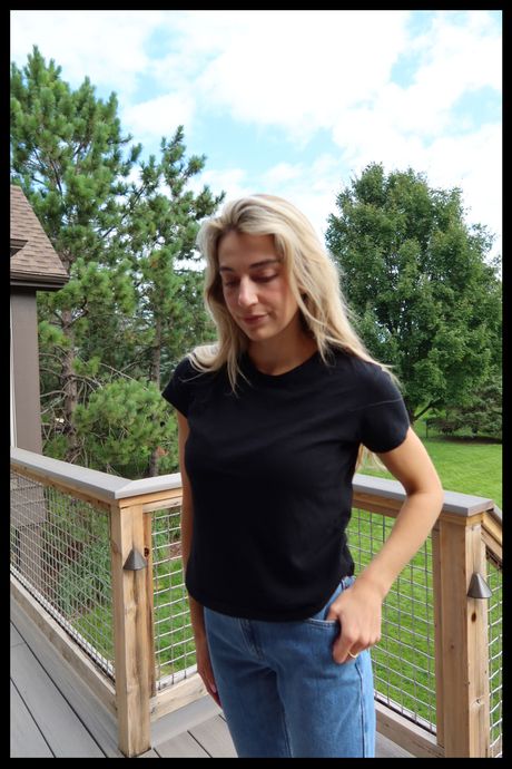 The Box-Cut Tee is a favorite of Taylore Glynn, a brand marketing manager at the Maker Hotel, who says this black T-shirt perfectly fits her body shape. Glynn told me she has “a large bust and smaller ribs, so certain tees can end up looking wonky on me: too loose and the shirt balloons out under my bra cups; too snug and I get that overly tight stretch across the chest.” But the Box-Cut Tee is just right. Our writer and resident fashion expert Ambar Pardilla agrees. “I’ve always had trouble finding T-shirts because I have a bigger-ish chest and I’m petite,” she says. But Everlane’s box cut “hits my shoulders without the dreaded drooping, and the length just skims the top of my jeans.” She’s impressed with the construction, saying Everlane’s T-shirts “wash so well with no shrinking or saturation loss at all, which is super important when it comes to black tees.”