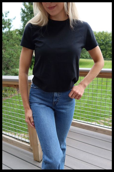 A previous version of this story listed the Pima Cropped Easy Crew as our favorite cropped black T-shirt, but a brand representative told me that the tee has since been rebranded to the Pima Boxy Crew. This style from Buck Mason got nods from two experts: Aishwarya Iyer, the founder and CEO of olive-oil brand Brightland, describes it as “soft, comfortable, and perfect for hanging at home or wearing out and about in.” Meanwhile, our senior deputy editor, Simone Kitchens, adds that the shape is the “ideal combination of boxy and cropped: It doesn’t feel too tight anywhere, especially under the arms — it just hangs in this cool, easy way.” Both like to wear it with high-waisted jeans; Kitchens notes that it “looks especially good with faded black Levi’s.”