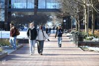 People walk during a snow day on Sunday, Jan. 25, 2026 in University Park, Pa.